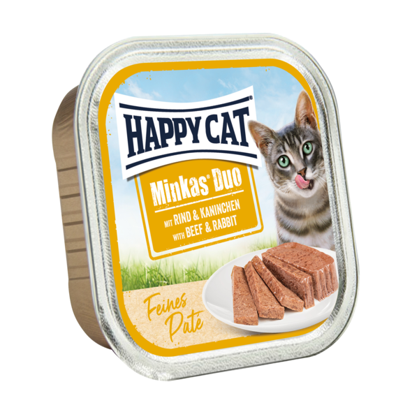 Happy Cat – Duo Menu is natvoer met vis of vlees in ieder kuipje. De paté bevat een smakelijke combinatie van twee soorten vlees of vis en is een ware traktatie voor uw kat. Duo Menu is verkrijgbaar in 6 heerlijke smaken.