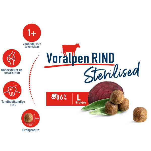Happy Cat Sterilised Droogvoer met rund is speciaal ontwikkeld voor gecastreerde katten. Deze smakelijke voeding bevat slechts 10,5% vet en is verrijkt met hartig Beiers rundvlees, rozemarijn en mariadistel. De grotere brokken stimuleren het kauwen en dragen zo bij aan de dagelijkse tandverzorging. Een uitgebalanceerde en gezonde keuze voor katten die baat hebben bij een gecontroleerd dieet.